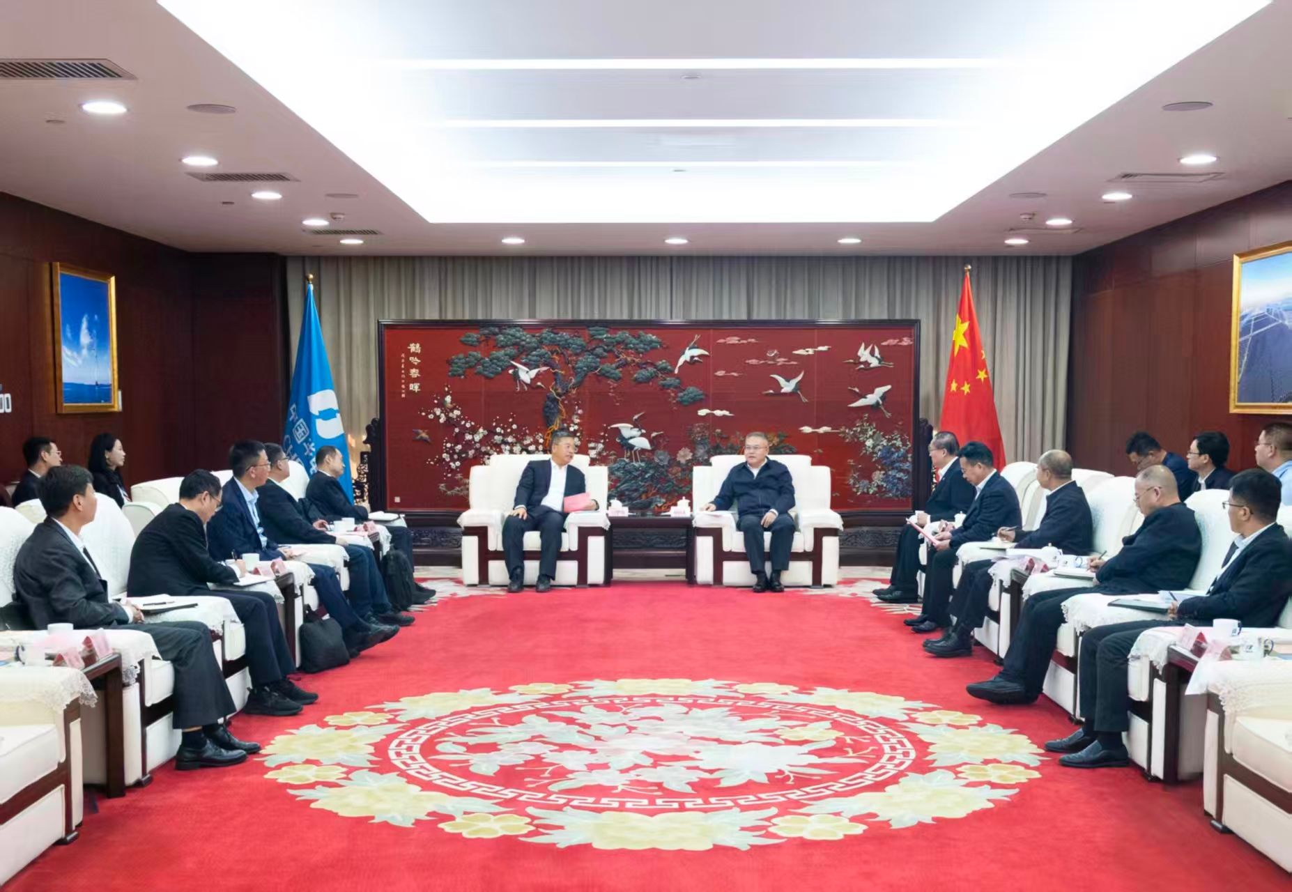 • 10月31日,中國華能集團有限公司董事長、黨組書記溫樞剛在集團公司總部會見國家開發(fā)銀行黨委副書記、行長譚炯。集團公司總會計師、黨組成員李櫻,國家開發(fā)銀行黨委委員、副行長謝泰峰參加會見。 溫樞剛對譚炯一行的到來表示歡迎,對國家開發(fā)銀行多年來給予中國華能的支持表示感謝,并介紹了公司經(jīng)營發(fā)展、業(yè)務(wù)布局等有關(guān)情況。他表示,中國華能與國家開發(fā)銀行有著良好合作基礎(chǔ),希望雙方進一步鞏固和拓展合作空間,加強多領(lǐng)域、各層級交流溝通,進一步深化在創(chuàng)新性業(yè)務(wù)、國際業(yè)務(wù)等領(lǐng)域的合作,加強“十五五”規(guī)劃對接
